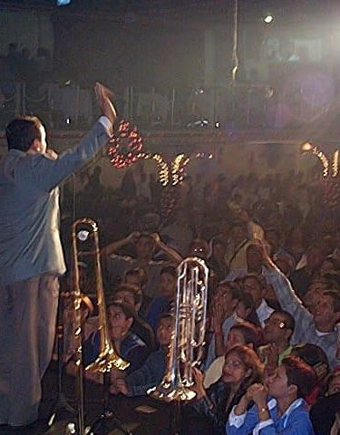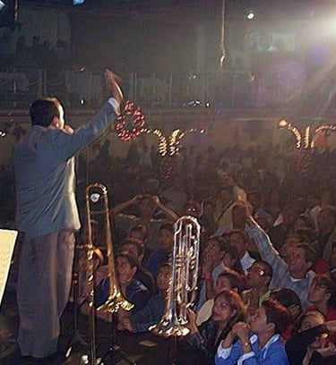 Between warm-ups, Willie tells me about some of the strange and funny things that have happened to him during concerts and club gigs. I ask why he once thanked boxing champ Roberto Durán for his help during a Miami appearance. "I had just done a gig in New York City," he says, "where this jerk in the audience was being really disruptive. Let's just say that before I decided to settle the guy down, Roberto was there to lend a hand or two." He’s about to share another story when we hear a huge roar from the crowd and the announcer’s voice introducing him. The front of the stage is jammed with fans, and security is everywhere. I’m standing backstage with Ernesto when the band launches into "Contrabando." Willie comes out, shaking hands with fans, and pandemonium breaks out. A young man tries to climb onstage, but security stops him. When Willie starts to sing, the crowd goes wild. He glances back at me, smiles, and gives me a thumbs-up. Before the song ends, the same fan makes it onto the stage again, but security reacts instantly. Later in the set, he manages to scramble up once more and is grabbed hard by the guards. Willie stops and asks the young man what he wants. The fan points to his girlfriend, who’s holding a camera. Willie tells the four security men to let him go, throws an arm around him, and turns toward the camera. It flashes along with many others. The crowd explodes in applause and cheers. Willie tells the audience he loves them, but that it’s safer if they don’t come onstage while he’s trying to please them with his songs. He promises autographs and photos after the show. The crowd jumps, screams, and eventually settles down. The next two hours fly by. The shifting lights cast surreal shadows across the stage, like something out of a music video. Standing up there, you feel like part of the whole scene; it’s hard not to sway and sing coro, especially when the backup singers are smiling at you. Willie catches me singing, grins, and gives me another thumbs-up. One of my secret wishes has just come true: I’ve sung coro with Willie Colón.